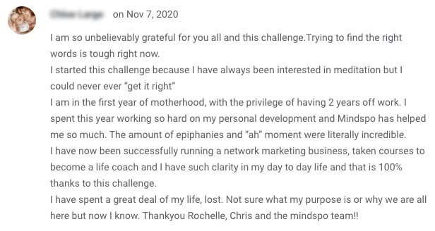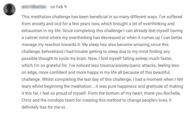 Every morning you'll receive a short video message from Rochelle or Chris with Meditation advice, to keep you on track to success.